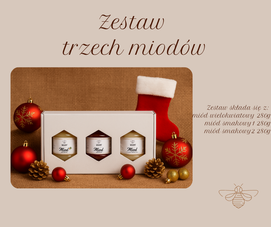 Zestaw zawiera 3 słoiki po 280 g miodu.